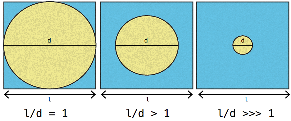Fig. 1.1 Schematic representation of modifying the l/d ratio. This ratio in part determines the accuracy of the \(\pi\) estimation.¶